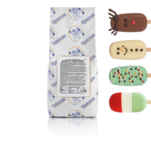 Base Planetaria là bột nền hoàn chỉnh để tạo ra hỗn hợp chất lỏng hoàn hảo cho Stick Gelato chỉ bằng cách sử dụng Máy trộn đứng. Nó được pha chế để sử dụng với khuôn silicon, vì kết cấu lỏng của nó có thể dễ dàng lấp đầy khuôn mà không tạo ra bọt khí.
