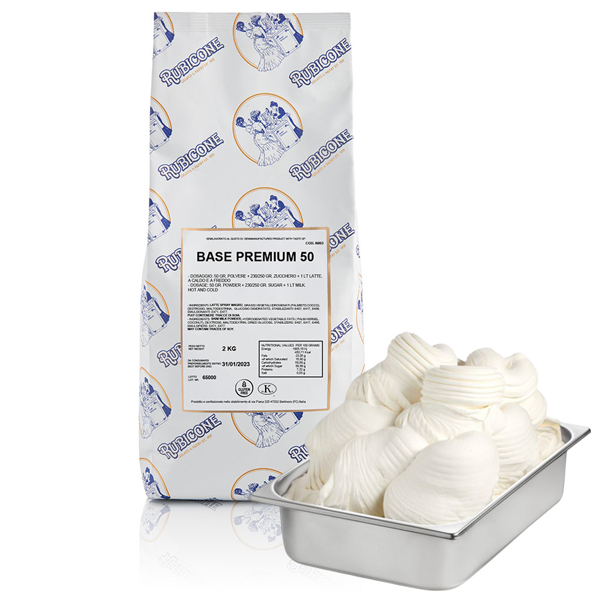 Bột làm kem nền Base Premium 50 là dòng bột làm kem trắng chưa có vị chỉ cần pha 50gr bột với 1 lít sữa tươi không đường, có sự kết hợp với hương liệu, phụ gia làm kem, rồi đánh trộn đều lên trước khi đổ vào máy làm kem.