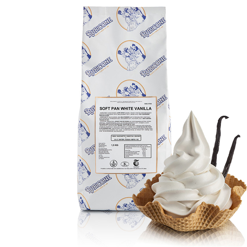 Bột làm kem tươi Rubicone vị Vanilla dùng cho các máy làm kem hiệu Taylor, Taycool, Innova, Gelmatic, Smach, Frigomat, Finamac, Carpigiani. Với những máy làm kem chất lượng thì sản phẩm kem ra rất ngon, còn với những máy làm kem, sản xuất ở Trung Quốc giá rẻ sẽ chạy ra sản phẩm không ngon.