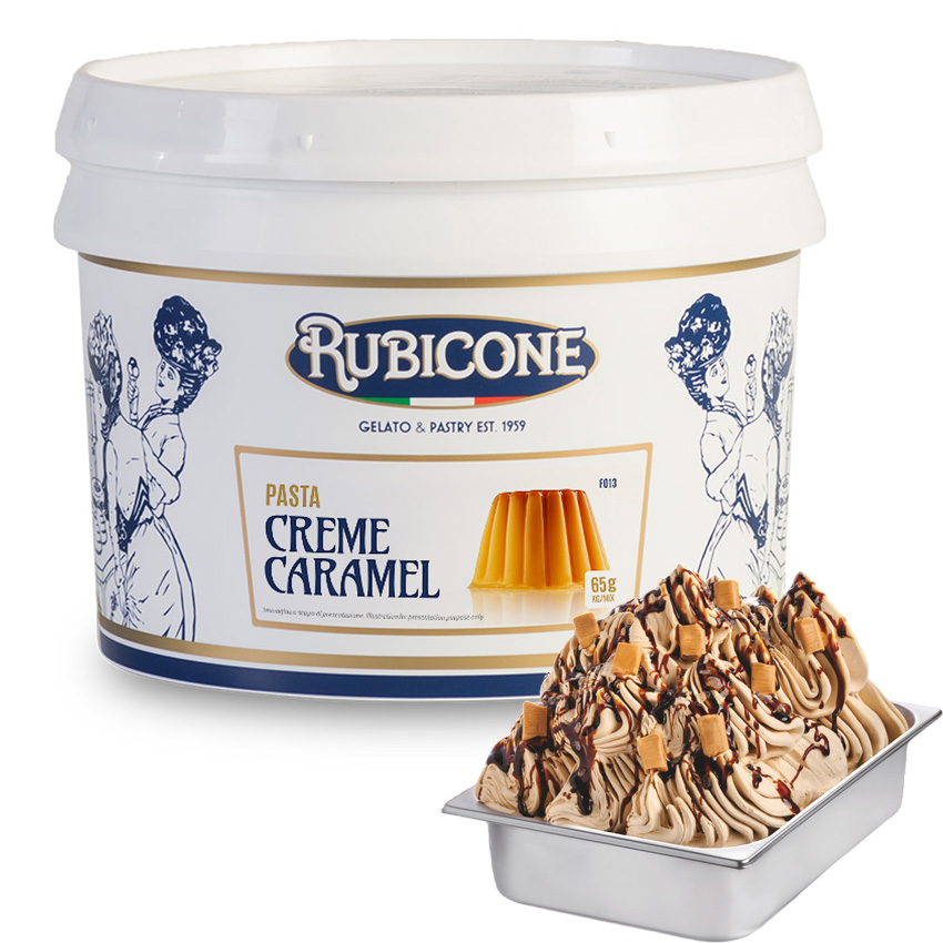 Thành lập từ 1959, sản phẩm của Rubicone hiện được phân phối gần 200 quốc gia trên thế giới. Rubicone luôn chú trọng nghiên cứu, cải tiến chất lượng, phong vị truyền thống, nhà làm (home-made). Sản phẩm của Rubcicone dễ sử dụng, ổn định và cho chất lượng kem như ý… Với Rubicone, người làm kem, làm đồ nước có thể làm kem chuẩn Ý, làm đồ nước kiểu Tây đúng kiểu Italy dễ dàng, mà không cần phải tốn nhiều công sức, bí quyết. Người làm kem chuẩn Ý mà không cần phải là một đầu bếp chuyên nghiệp như ở Italy cũng cho ra những sản phẩm phẩm đầy chất nghệ thuật và ưu việt.