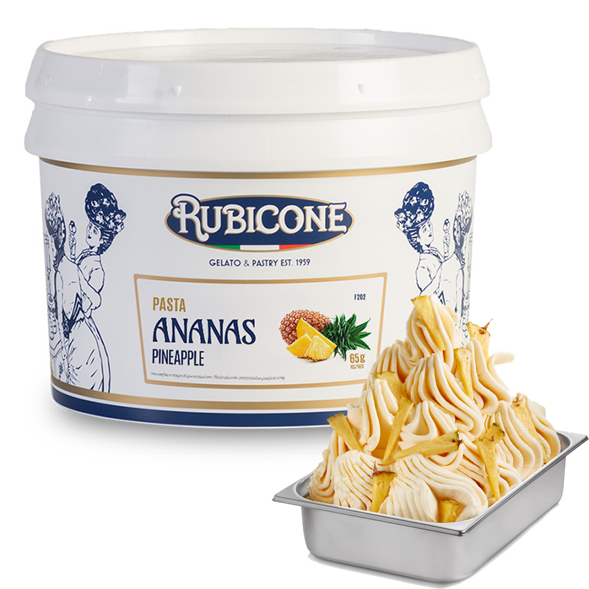 Thành lập từ 1959, sản phẩm của Rubicone hiện được phân phối gần 200 quốc gia trên thế giới. Rubicone luôn chú trọng nghiên cứu, cải tiến chất lượng, phong vị truyền thống, nhà làm (home-made). Sản phẩm của Rubcicone dễ sử dụng, ổn định và cho chất lượng kem như ý… Với Rubicone, người làm kem, làm đồ nước có thể làm kem chuẩn Ý, làm đồ nước kiểu Tây đúng kiểu Italy dễ dàng, mà không cần phải tốn nhiều công sức, bí quyết. Người làm kem chuẩn Ý mà không cần phải là một đầu bếp chuyên nghiệp như ở Italy cũng cho ra những sản phẩm phẩm đầy chất nghệ thuật và ưu việt.